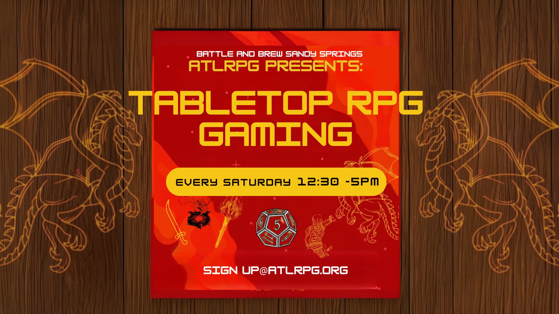 🎲 Dungeons & Drafts: TTRPG Saturday - Battle & Brew (5920 Roswell Rd Suite A-120, Sandy Springs, GA 30328) | 12:30 PM–5:00 PM | TBD | More: Learn more