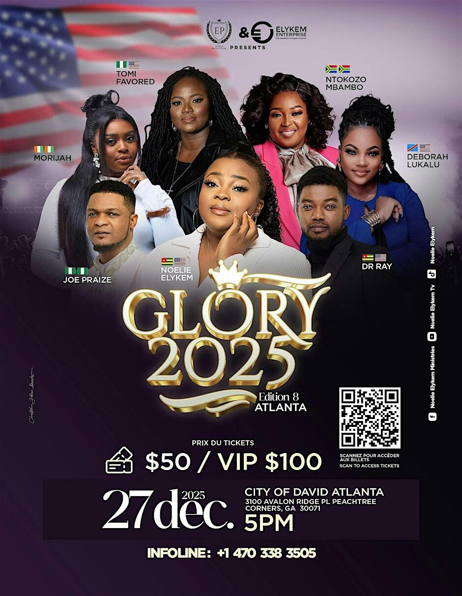 🙏 Glory 2025 ATL (concert-style worship night) — RCCG City of David Atlanta, Peachtree Corners | 5:00–10:00 PM | Ticketed | More: Event page