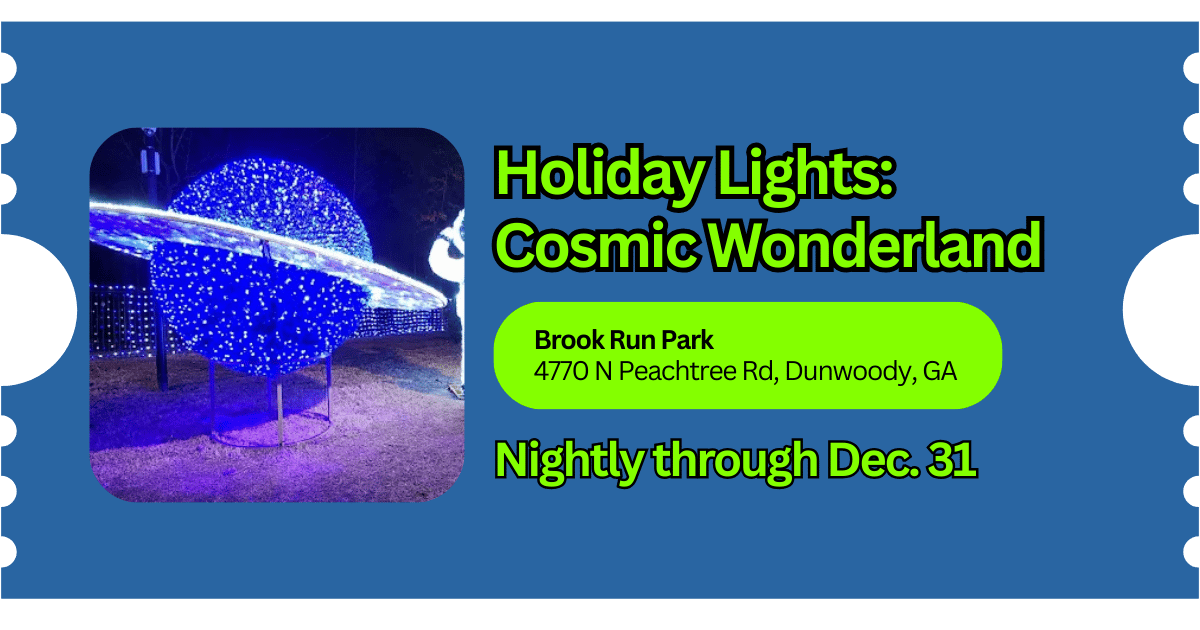 🎄 Holiday Lights: Cosmic Wonderland — Brook Run Park, Dunwoody | 5:00–10:00 PM | Free | More: Event info