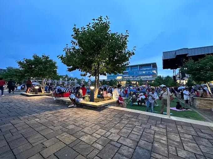 In the afternoon, City Springs is a built-in “one stop” for errands and holiday vibes.