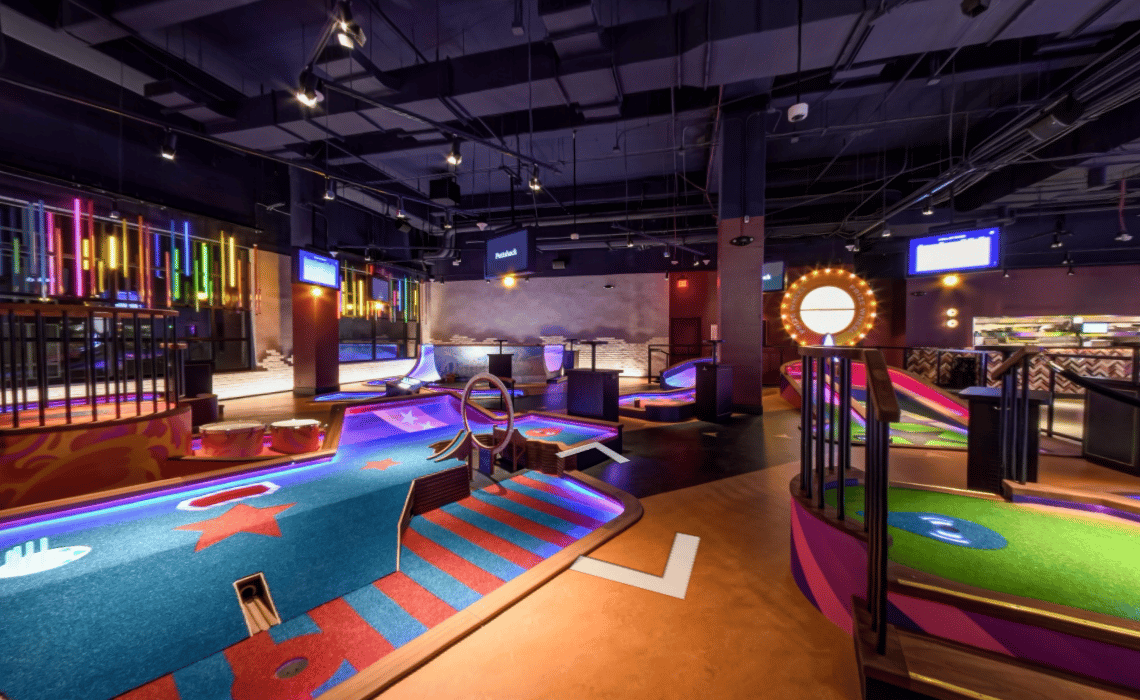 It's a fun option for older kids, tweens, and date nights, with 9-hole courses, a full food menu, and cocktails for the adults.