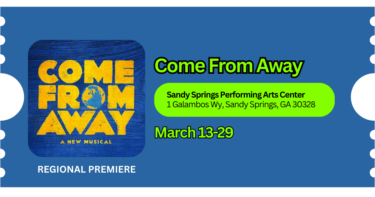 🎟️ Come From Away - Byers Theatre at Sandy Springs Performing Arts Center (1 Galambos Way, Sandy Springs) | 2:00 PM | Tickets | More: Event info