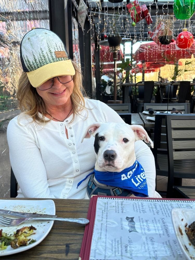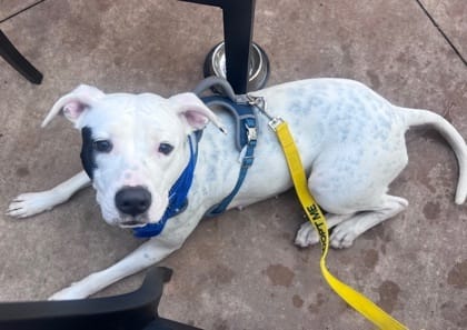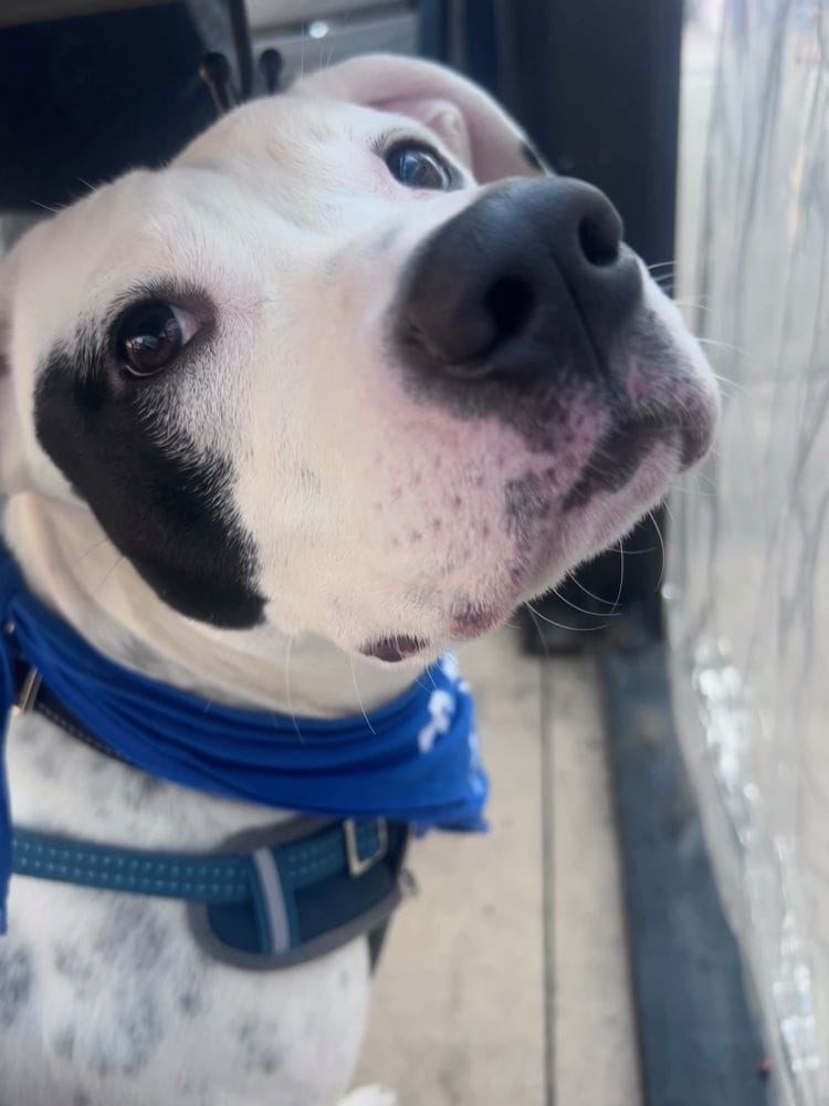 Winter is an affectionate “velcro dog” who loves being close to her people and absolutely lights up for treats, pets, and attention.