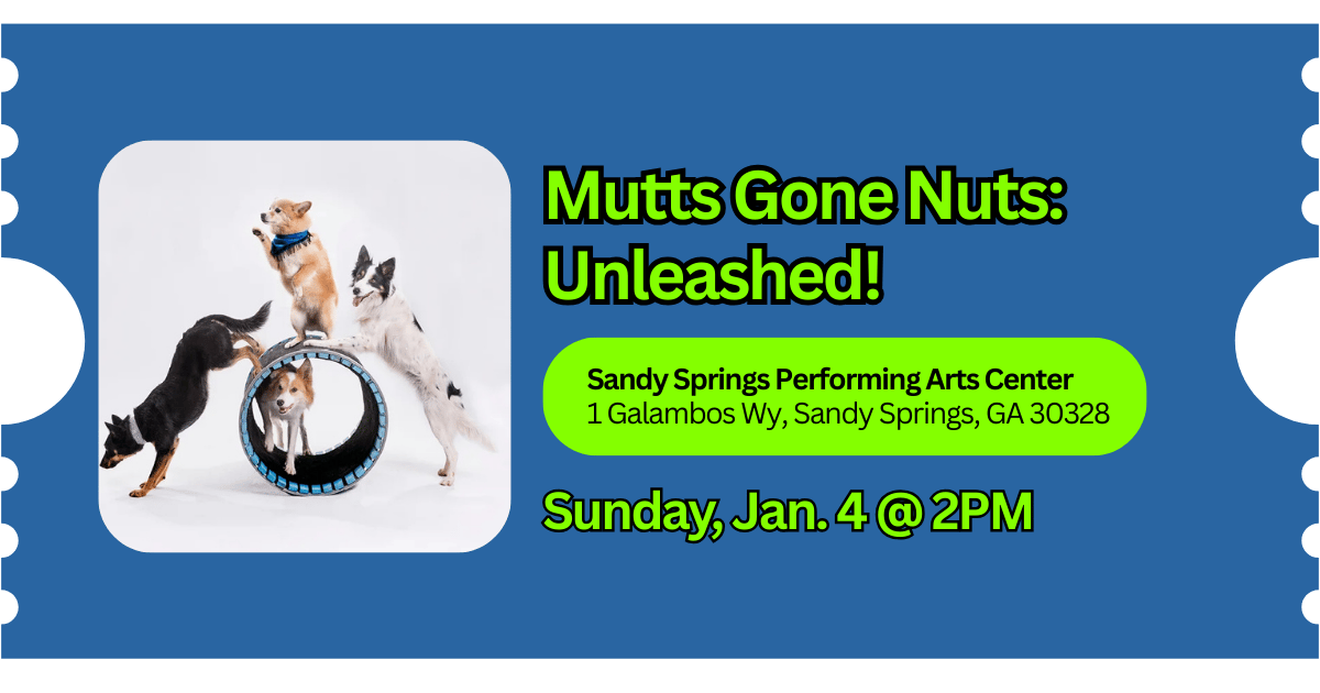🐶 Mutts Gone Nuts: Unleashed! — Byers Theatre at City Springs, Sandy Springs | 2:00 PM or 7:30 PM | Ticketed | More: Event info