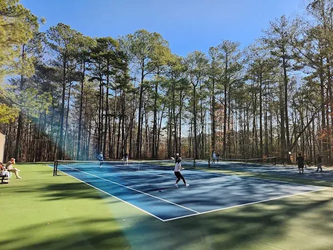 If you’ve got older kids or teens, bring racquets and split off for a set or two on the tennis courts while younger siblings stay on the playground with another adult.