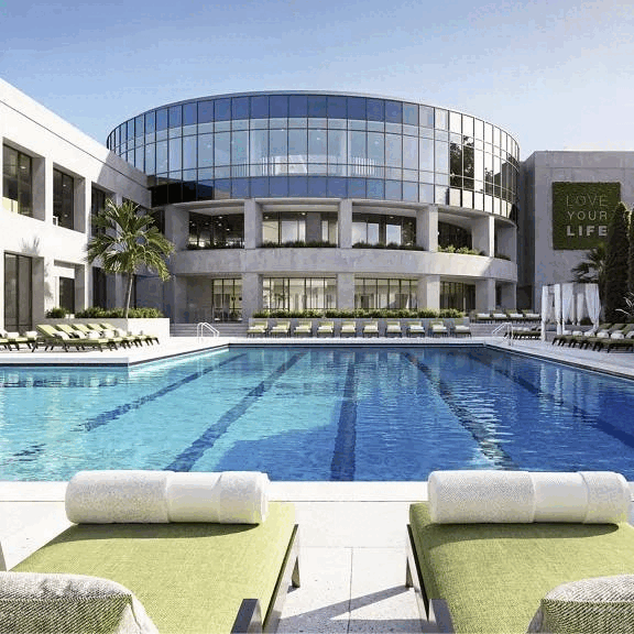 The former Concourse Athletic Club transforms into a 79,000-square-foot luxury athletic resort with eight outdoor pickleball courts, multiple pools, four boutique studios, and an executive work lounge. Recovery amenities include cold plunge, infrared saunas, and metabolic testing.